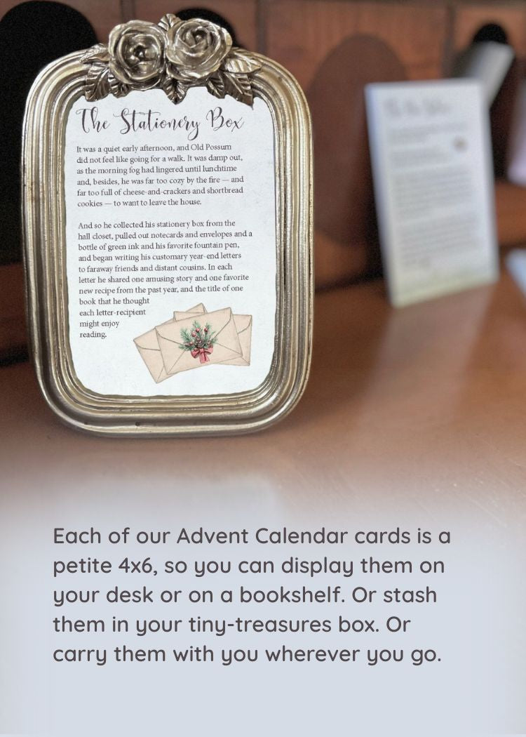 It's a quiet December morning as you pour a fresh cup of coffee and open that day's Advent Calendar envelope. And as you savor another tiny Wintertime tale, you already know the story's calm, cozy vibes will linger with you throughout the day.